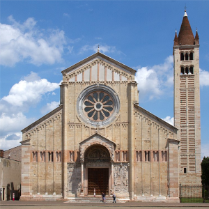 Principale capolavoro del romanico in Italia, la Basilica di San Zeno è uno degli edifici più importanti della città.È dedicata all'ottavo vescovo di Verona, un santo di origine africana a cui si attribuiscono numerosi miracoli e la conversione al cristianesimo delle popolazioni venete. Il nucleo originario della Basilica risale al IV secolo, quando una piccola chiesa fu eretta vicino al luogo di sepoltura del Santo