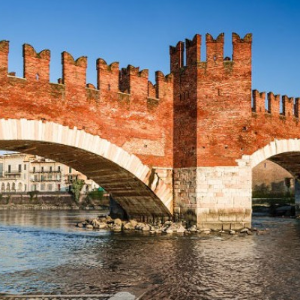 Fatto costruito nella seconda metà del XIV secolo da Cangrande II della Scala, il Ponte Scaligero è magnifico esempio di ingegneria militare trecentesca. Con le sue linee eleganti si slancia ardito sul fiume Adige partendo dalla Torre del Mastio, posta al centro della medioevale fortezza di Castelvecchio