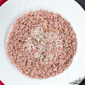 Risotto preparato con midollo di bue e sfumato con l'Amarone della Valpolicella