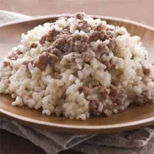 Risotto servito con la tipica carne tastasal veronese, preparata con carne di maiale macinata, salata e pepata